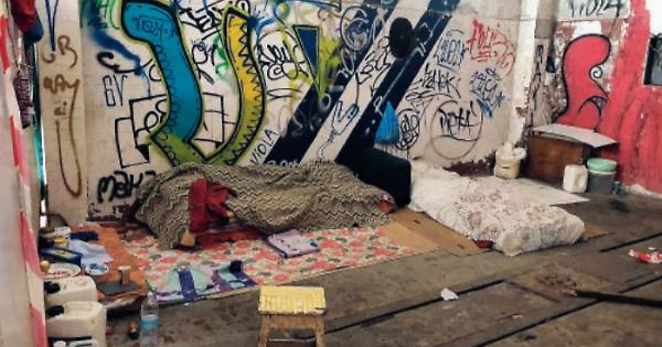 Ci sono uomini ma anche donne, forse tossici che hanno appena consumato una dose lontano da occhi indiscreti. Così tutto il giorno. Chi ha fortuna di entrare, e uscire con le sue gambe, scoprirà corridoi abbandonati e una serie infinita di mini appartamenti. Costruiti tra muri di cartone, tra una stanza e l’altra. Ci sono materassi, fornelli e pentole. Una scala conduce fino alle soffitte mentre un altro passaggio porta alle cantine. Per terra rifiuti, detriti, vegetazione. Sui muri i segni del passaggio dei writers e forse di qualche satanista. Come dimostrano i numerosi “666”, quasi un’evocazione del male. Di sicuro i curiosi non piacciono, lo si capisce dai numerosi teloni che coprono ex uffici oggi trasformati in camere da letto. Dall’altra parte della strada una scala a chioccola e rumori sinistri. E quando tutto sembra finito basta aspettare qualche minuto prima di vedere un’ombra uscire furtivamente da una delle tante porte.