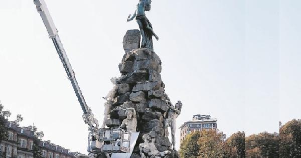 Ieri pomeriggio i tecnici del Comune erano al lavoro sulla Fontana del traforo del Frejus, il monumento di piazza Statuto al centro delle polemiche dopo il distacco di una gamba di uno dei titani. L’arto si era sbriciolato durante l’allestimento floreale realizzato in occasione dei festeggiamenti dei 150 anni del traforo del Frejus conclusasi ormai diversi giorni fa. Gli addobbi floreali erano stati poi rimossi da tutto il monumento eccezion fatta per l’area attorno alla gamba mancante..