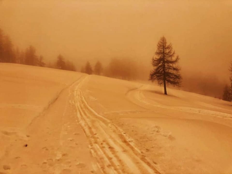 Le foto scattate in Piemonte il 6 febbraio 2021, quando si verificò il fenomeno della neve rossa
