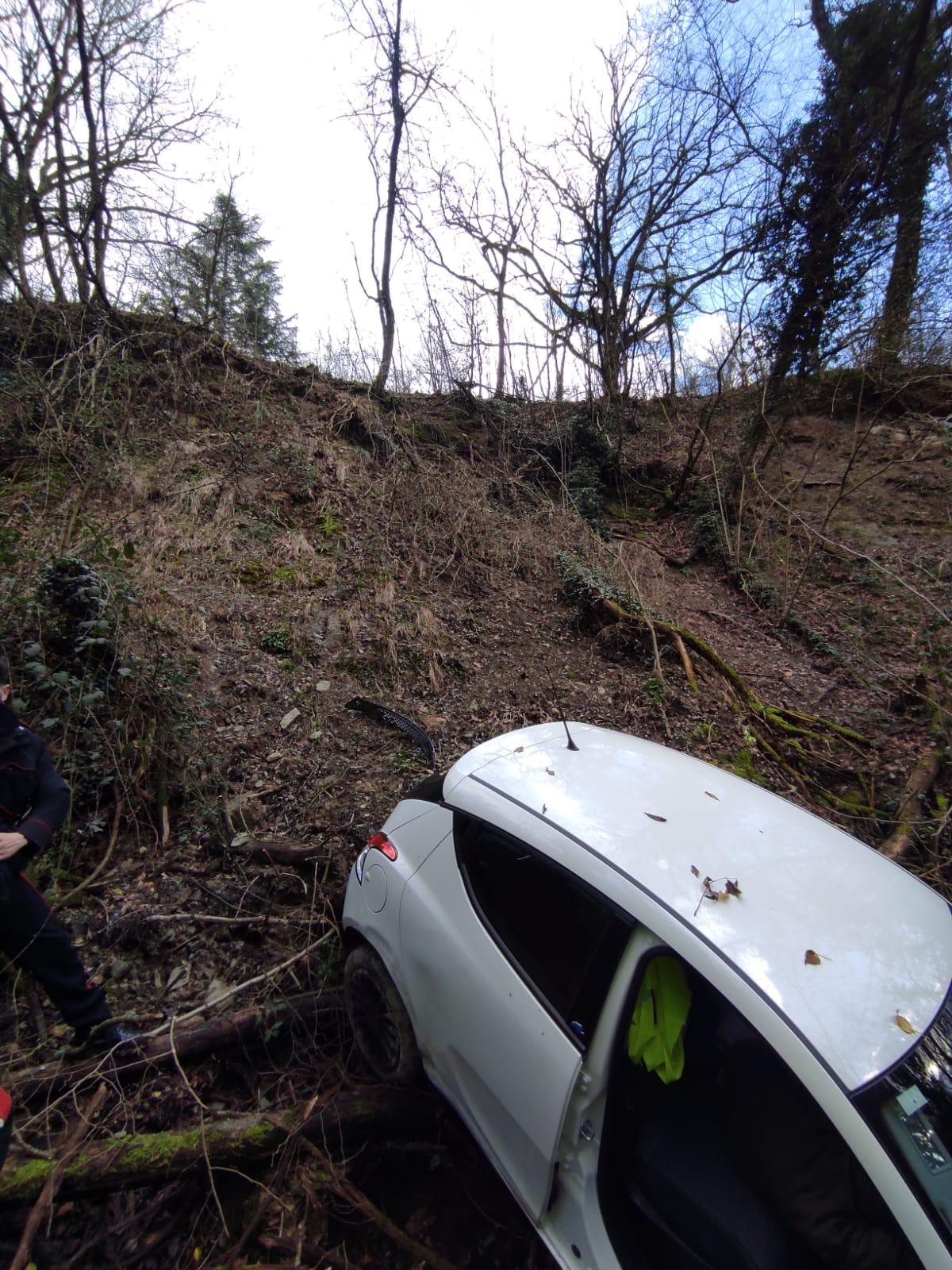 Claudio Ellena e la sua Lancia Ypsilon nel dirupo a Pino Torinese