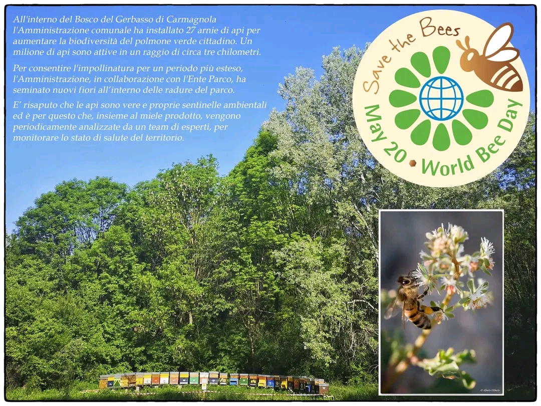 Quest'anno, la Giornata Mondiale delle api assume un significato particolare per Carmagnola: nel cuore del suo territorio, nel Bosco del Gerbasso, è stato avviato un progetto pionieristico per favorire la presenza e la prosperità delle api. Grazie alla collaborazione tra l’amministrazione comunale, le associazioni naturalistiche del territorio e gli apicoltori locali, sono stati installati 27 alveari, con la prospettiva di raggiungerne un massimo di 40, al fine di aumentare la biodiversità e monitorare la qualità dell’aria.