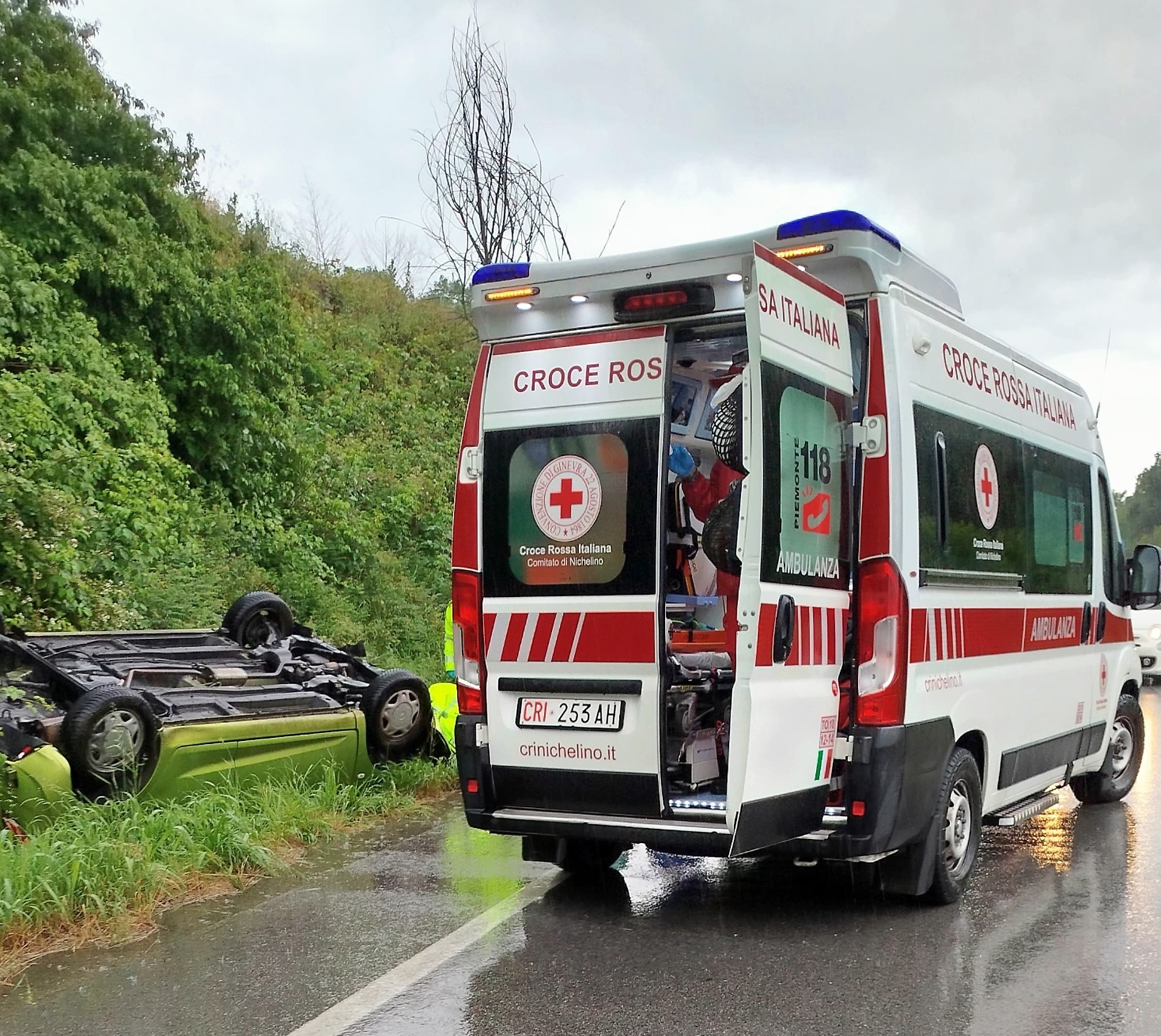 L'auto si capovolge dopo un tamponamento, una donna ferita nell'incidente stradale a Vinovo