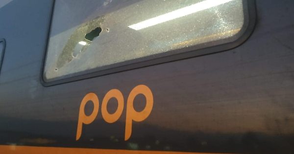 I vetri del treno rotti dai vandali