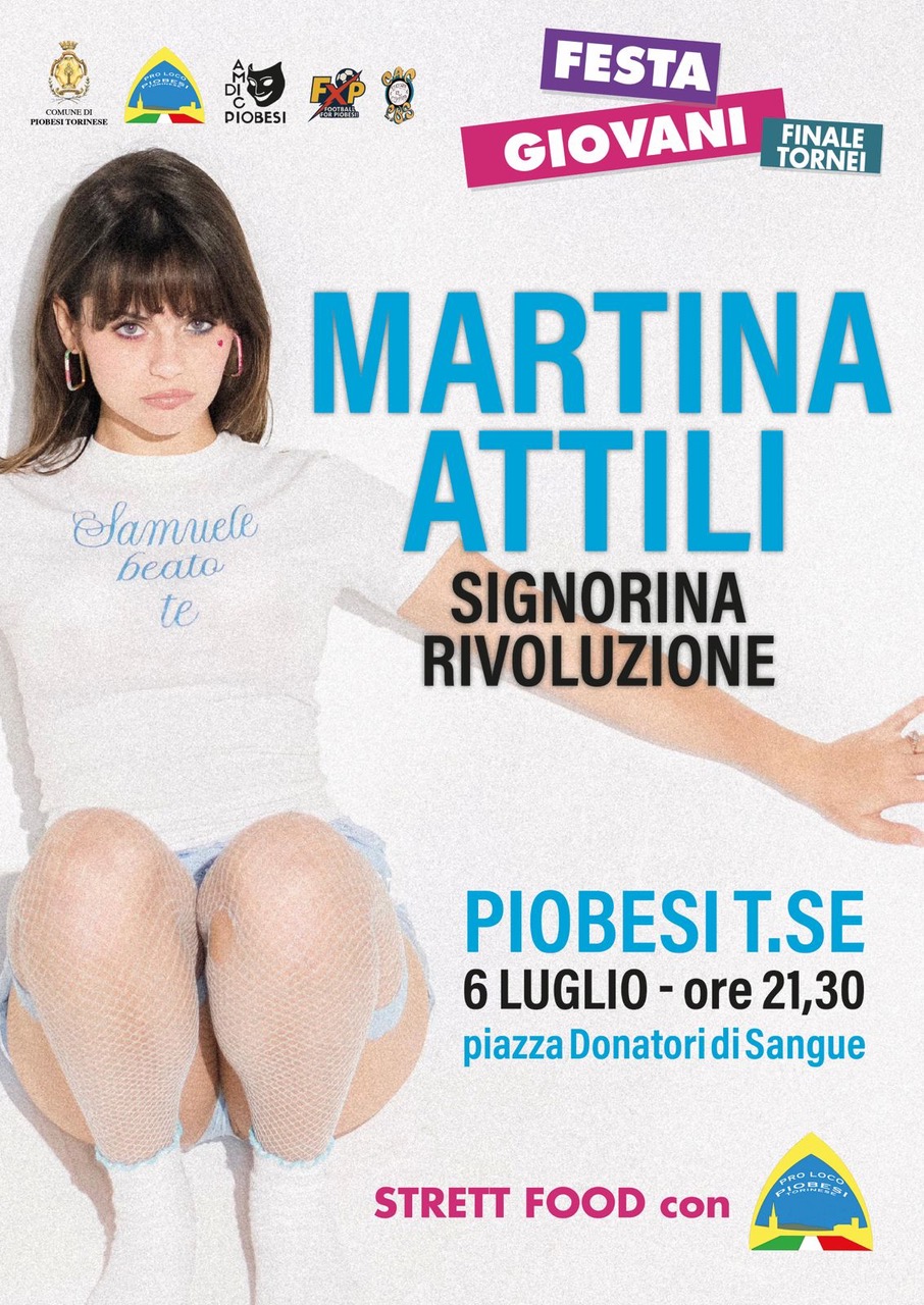 Sabato 6 luglio Piobesi Torinese avrà il piacere di ospitare una delle giovani promesse più interessanti del panorama musicale italiano: Martina Attili. La cantautrice romana, che si è fatta conoscere dal grande pubblico grazie alla sua partecipazione a X Factor 12, salirà sul palco di piazza Donatori di Sangue per un concerto che si preannuncia davvero speciale.