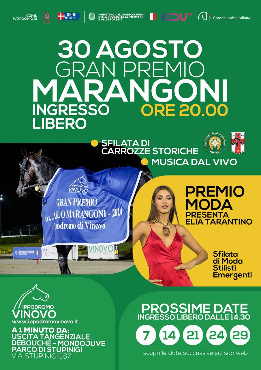 Nella sua lunga storia l'Ippodromo di Vinovo ha sempre saputo raccontare storie intriganti, importanti, indimenticabili. Succederà di nuovo sabato 30 agosto con la riapertura dell'impianto e con una riunione spettacolare che mette al centro al centro del programma, fatto di 8 corse, due classiche come il Gran Premio Avv. Carlo Marangoni – Memorial Fabio Jegher, corsa di Gruppo 1 sulla distanza del doppio km, con un montepremi di 154.000 € aperta a maschi e femmine, ma anche il Gran Premio Marangoni Filly, Gruppo 2 riservato solo alle femmine, sulla distanza del miglio e con un montepremi di 66.000€. Un doppio appuntamento che ancora una volta avrà il patrocinio della Città Metropolitana di Torino ed è realizzato in collaborazione con Theorema, storica concessionaria torinese.