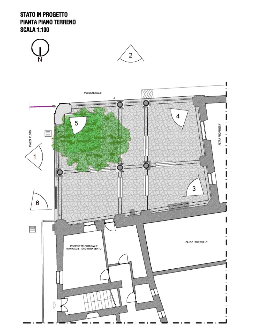 Il piano approvato prevede l’abbattimento totale, fatta eccezione per le colonne in pietra e muratura al piano terra, che resteranno come segno della memoria storica dell’impianto originario. Al posto dell’edificio sorgerà una nuova piazza cittadina, pensata come spazio di incontro e socialità, con pavimentazione riqualificata, arredi urbani moderni e un albero ad alto fusto, simbolo di rigenerazione.