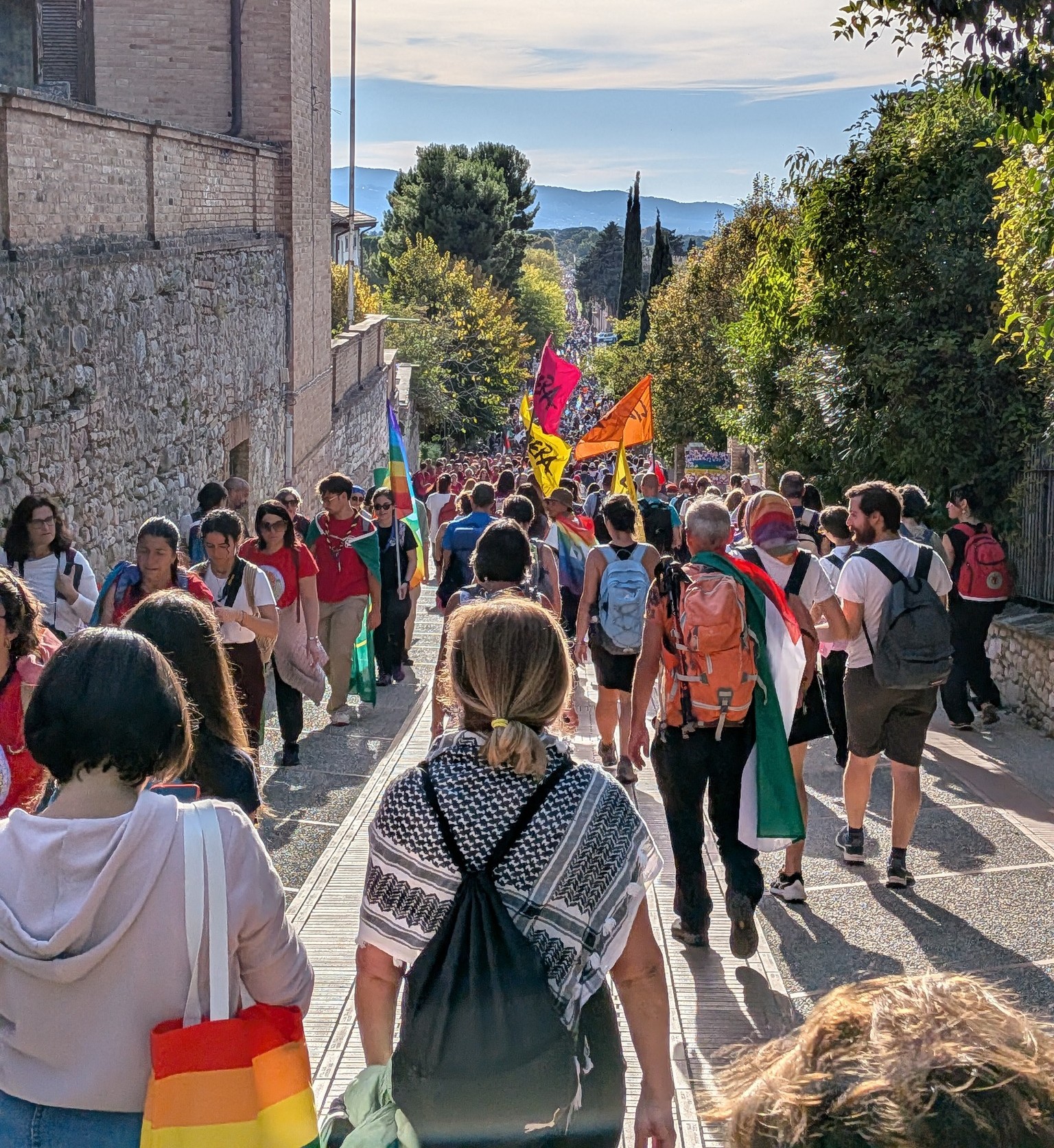 Lo scorso 12 ottobre il Comune di Grugliasco ha partecipato alla Marcia PerugiAssisi per la pace e la fraternità, l’iniziativa simbolo del movimento pacifista italiano. Migliaia di persone hanno percorso i 24 chilometri che separano Perugia dalla Rocca Maggiore di Assisi per riaffermare la fraternità e l’amicizia sociale come unica alternativa possibile ai conflitti e all’oppressione dei popoli.