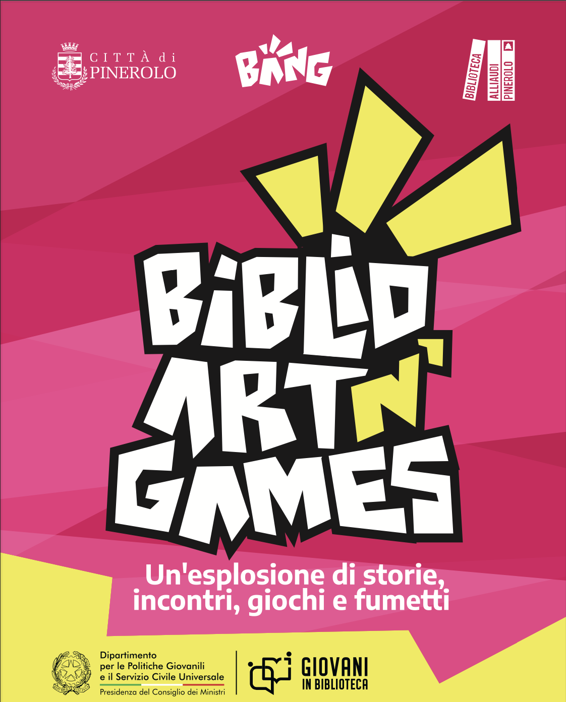 Come spiega Lia Bianco, assessora alle Biblioteche e all’Istruzione del Comune di Pinerolo, «Bang è un’occasione per ragazze e ragazzi di vivere la città e la cultura in modo nuovo, attraversando spazi, relazioni e linguaggi diversi. A partire dalla biblioteca, luoghi come questi possono essere abitati con creatività, ma anche come contesti di una comunità che prova a cambiare e a crescere».