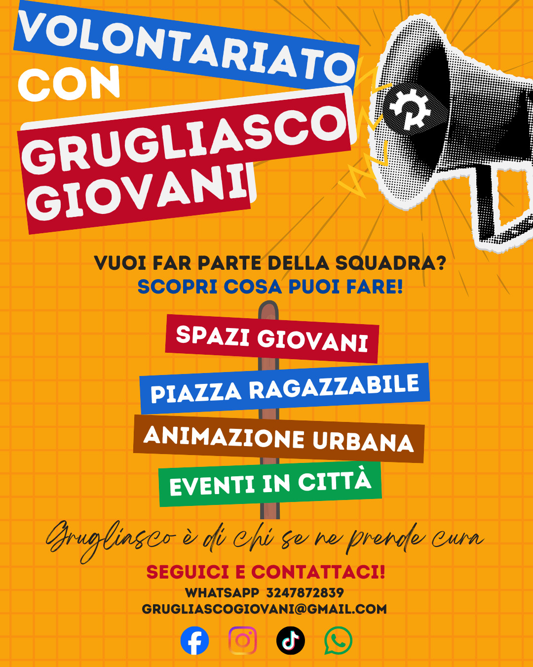 Chi desidera partecipare o diventare volontario può contattare grugliascogiovani@gmail.com o il numero 324 7872839. Un’occasione per mettersi in gioco, condividere esperienze e contribuire alla costruzione di una città sempre più giovane, solidale e partecipata.