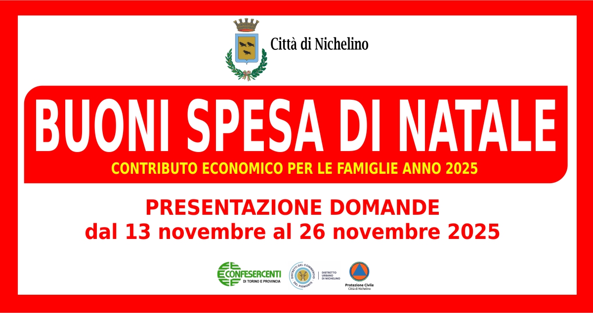 A Nichelino torna l’iniziativa dei Buoni Spesa di Natale, pensata per sostenere le famiglie in difficoltà economica in vista delle festività. Da mercoledì 13 a martedì 26 novembre 2025, i residenti con un ISEE non superiore a 7.000 euro potranno presentare domanda per accedere al contributo economico.