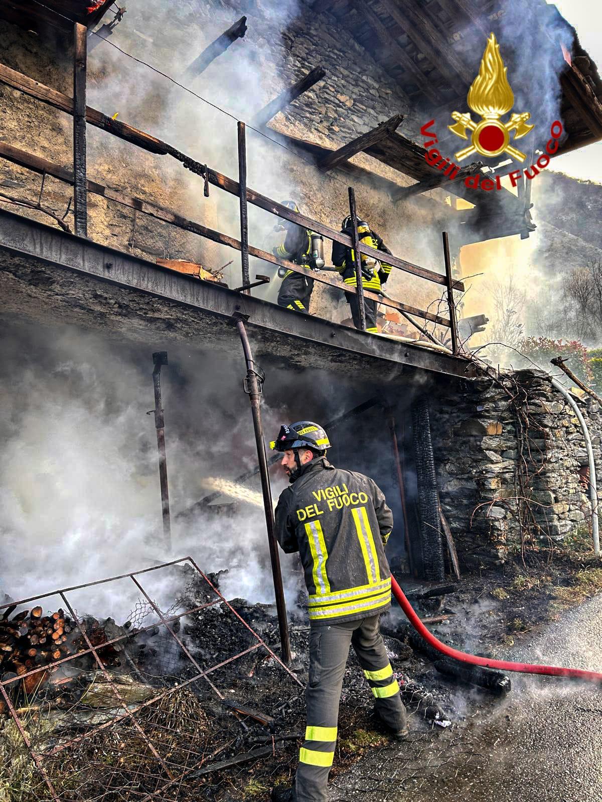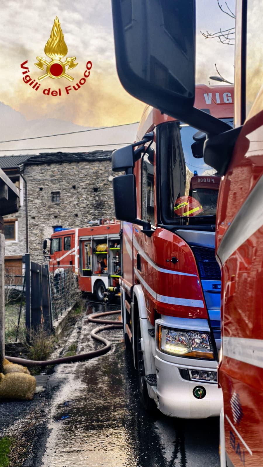 Intervento in corso dei vigili del fuoco di Torino a Novalesa per un incendio di una abitazione.
