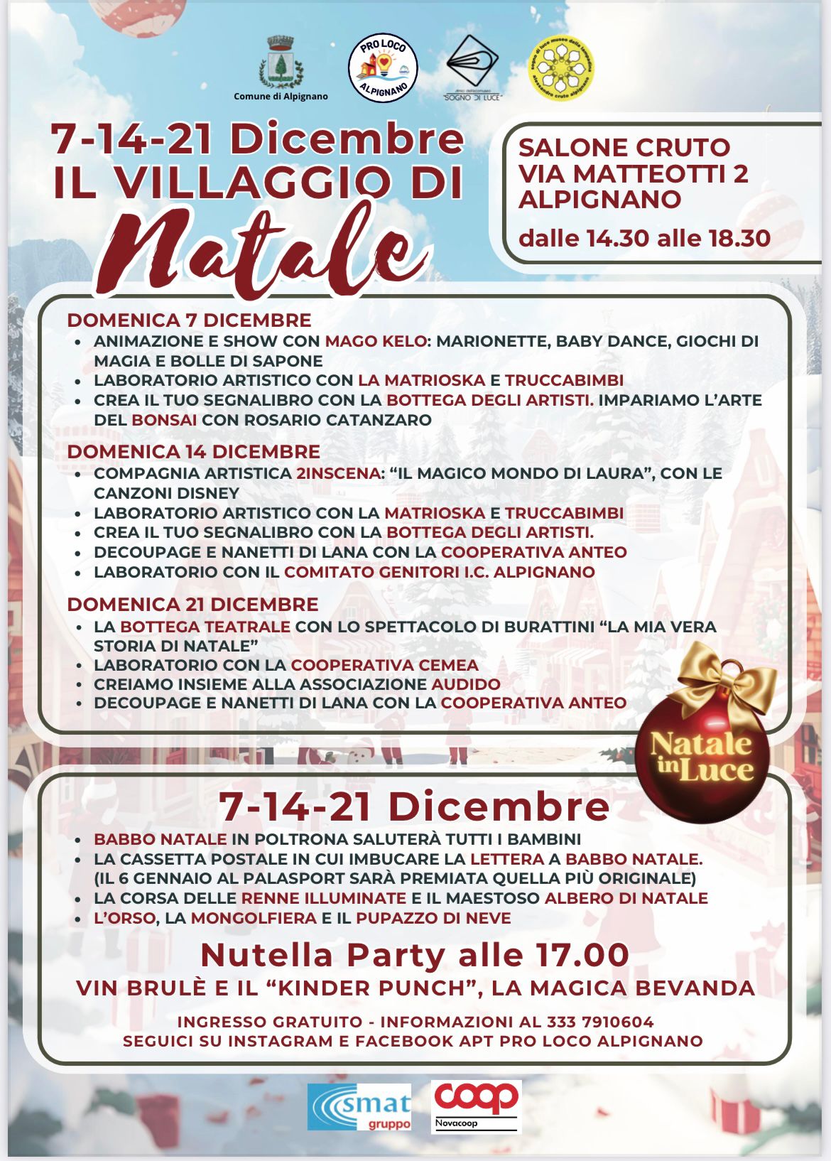 Previsti infine appuntamenti golosi come il Nutella Party delle 17, il vin brulè e il “Kinder Punch”. Un dicembre pieno di luci, musica e tradizione, con attività gratuite che accompagneranno Alpignano per tutto il periodo natalizio.