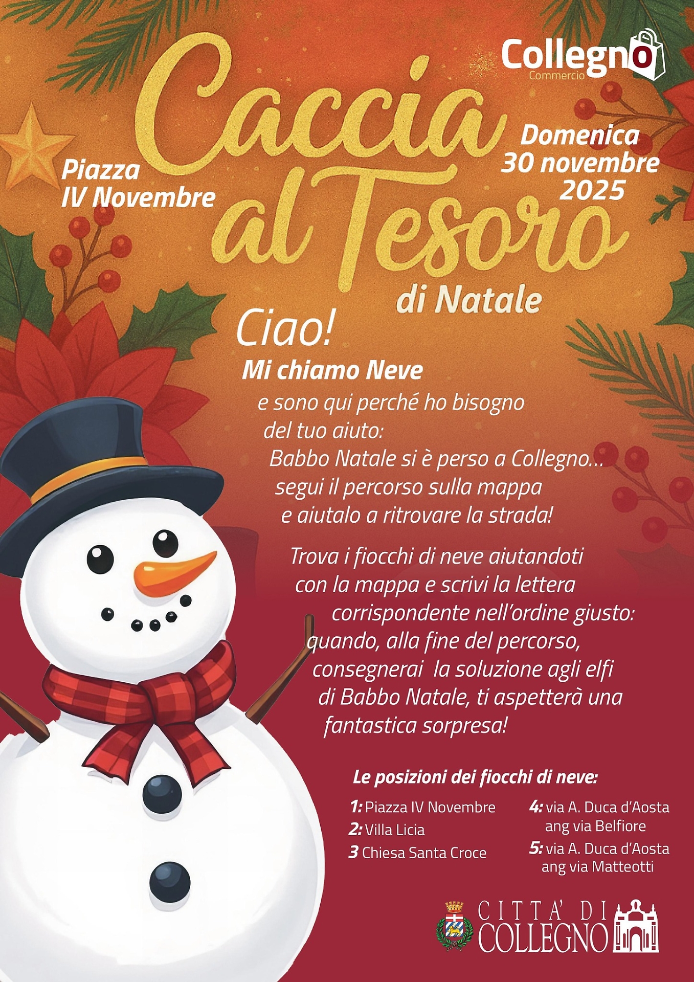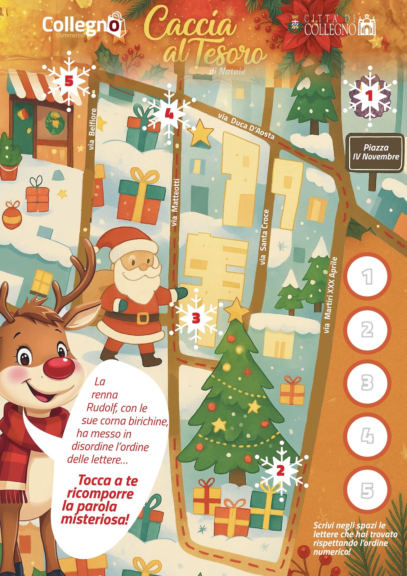 A Collegno il Natale arriva con un mistero da risolvere: Babbo Natale si è perso e i bambini sono chiamati a dargli una mano grazie alla Caccia al Tesoro di Natale, in programma domenica 30 novembre in Piazza IV Novembre.