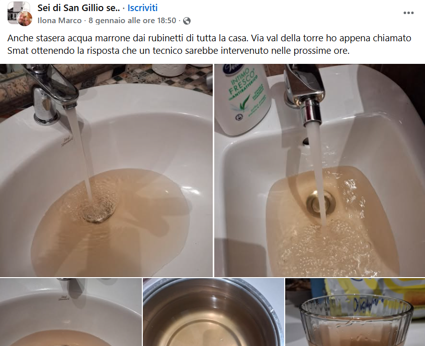 Negli ultimi anni, trovare acqua torbida che usciva dai rubinetti delle abitazioni di San Gillio era un fenomeno sporadico, che capitava una o due volte l’anno. Tuttavia, a partire dal 2025, il problema è diventato quasi quotidiano, con particolare concentrazione nelle zone di via Val della Torre e strade limitrofe.