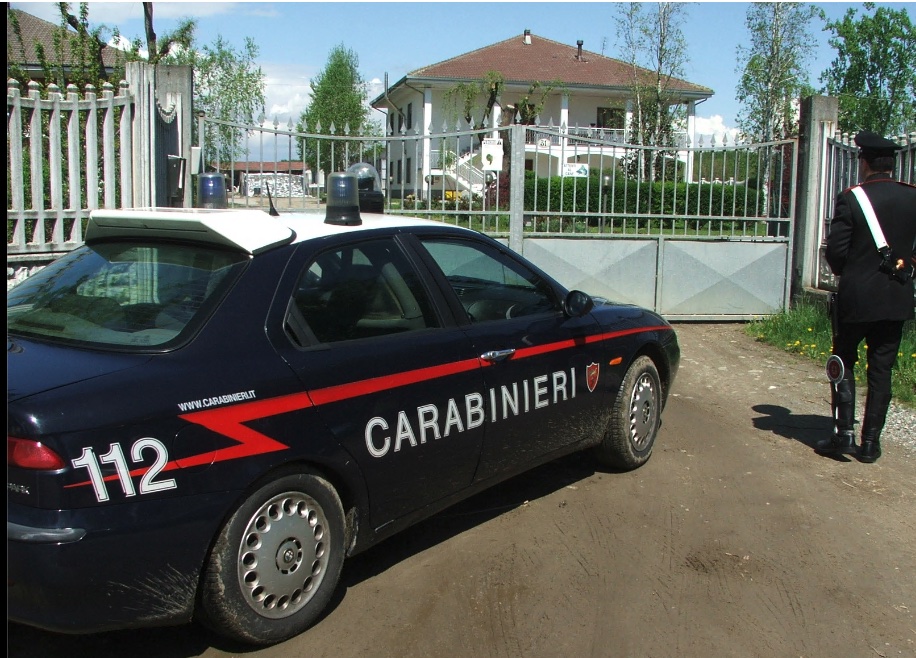 I carabinieri davanti alla villa e, nel riquadro, "Momo"