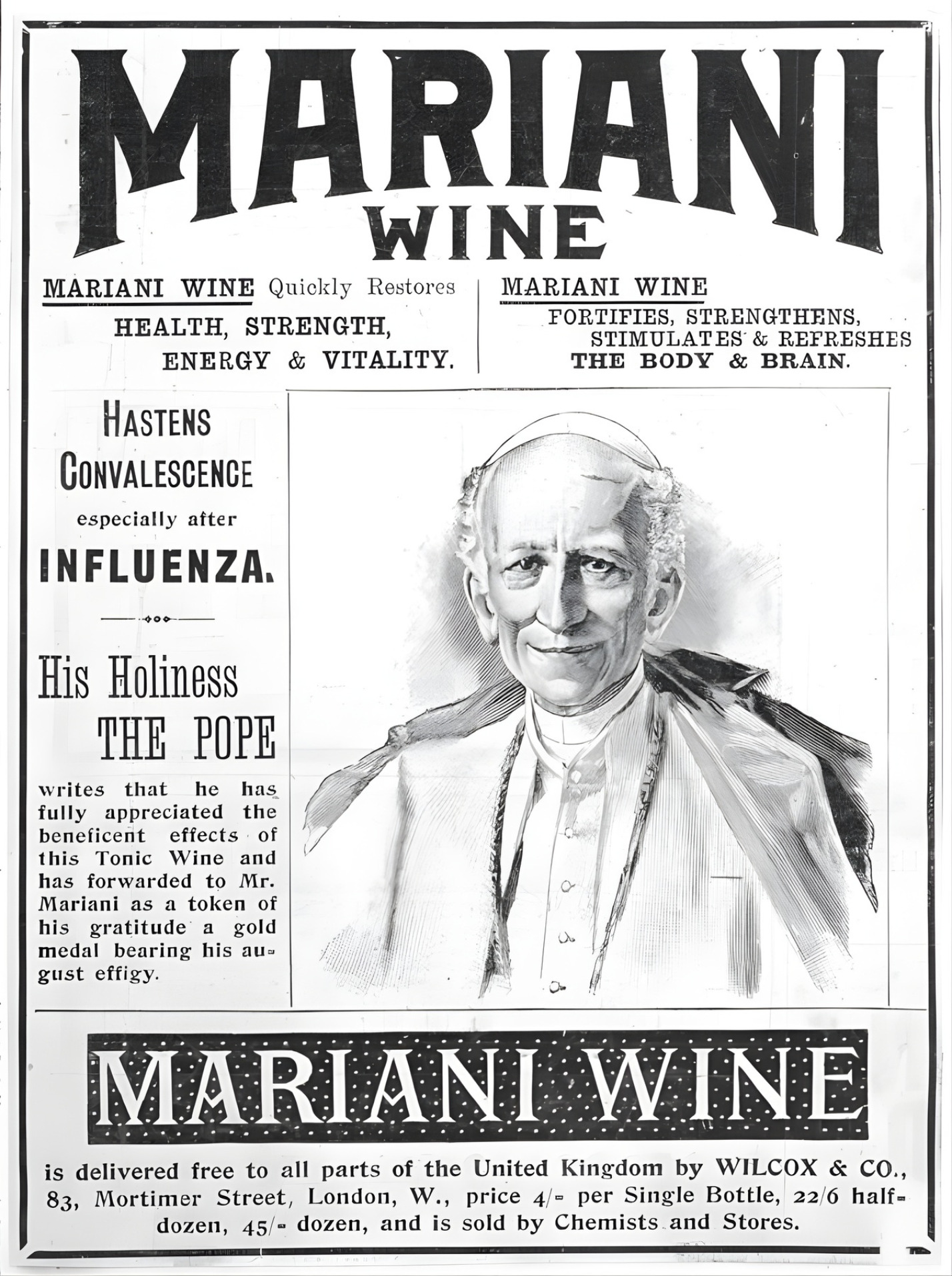 IL MANIFESTO PUBBLICITARIO DEL VIN MARIANI CON L'IMMAGINE DI PAPA LEONE XIII