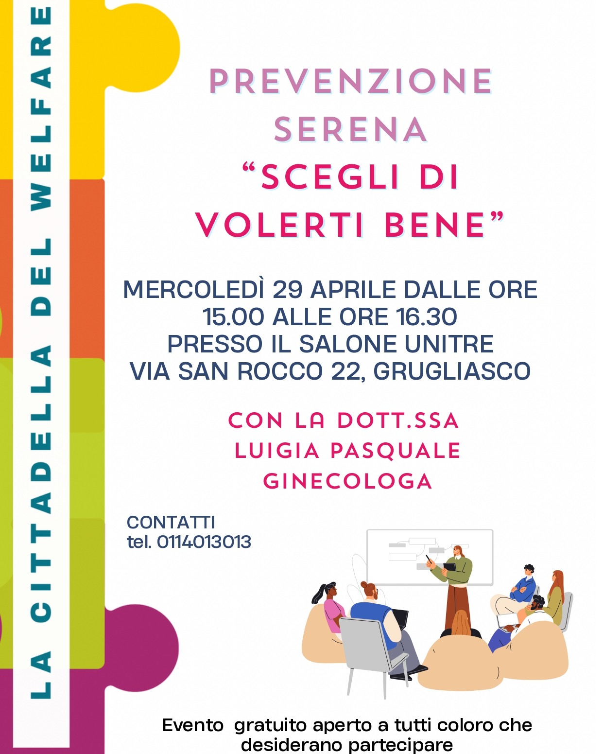 Mercoledì 29 aprile, dalle 15.00 alle 16.30, il Salone Unitre di via San Rocco 22 ospiterà l’incontro dal titolo “Scegli di volerti bene”, un momento di informazione e confronto dedicato alla prevenzione ginecologica. L’iniziativa rientra in un ciclo di incontri su salute, sicurezza e qualità della vita, organizzato in collaborazione con Unitre Grugliasco.