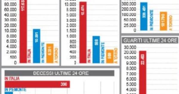 Il totale è ora di 10.991 deceduti risultati positivi al virus, così suddivisi per provincia: 1.519 Alessandria, 678 Asti, 406 Biella, 1.346 Cuneo, 906 Novara, 5.201 Torino, 487 Vercelli, 357 Verbano-Cusio-Ossola, oltre a 91 residenti fuori regione, ma deceduti in Piemonte.