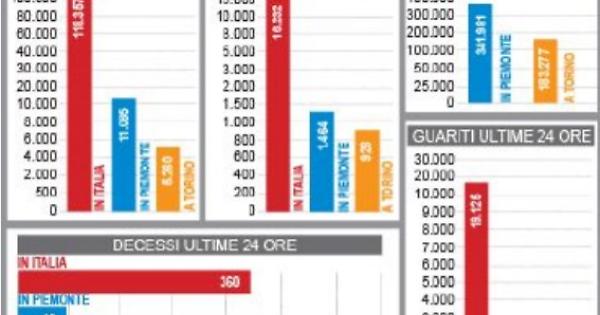 Il totale dei casi positivi diventa quindi 341.981 così suddivisi su base provinciale: 27.584 Alessandria, 16.520 Asti, 10.464 Biella, 49.057 Cuneo, 26.357 Novara, 183.277 Torino, 12.722 Vercelli, 12.103 Verbano-Cusio-Ossola, oltre a 1.426 residenti fuori regione, ma in carico alle strutture sanitarie piemontesi. I restanti 2471 sono in fase di elaborazione e attribuzione territoriale.