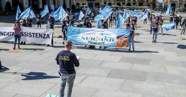 A un anno dalla precedente manifestazione, gli infermieri tornano a protestare in piazza Castello per chiedere: valore, dignità e sicurezza. Tre parole che identificano i problemi irrisolti della categoria, ossia: la carenza di personale e di assunzioni a tempo determinato, i ritmi stressanti a cui sono sottoposti negli ospedali e i rischi corsi ogni giorno per fronteggiare l’emergenza. «In un anno non è cambiato nulla, in Piemonte mancano all’appello 4mila infermieri in Piemonte, circa il 40% del totale, e le 2mila persone assunte a tempo determinato per far fronte alla pandemia a dicembre non lavoreranno più». Parole dure quelle di Francesco Coppolella, segretario regionale NurSind, il sindacato di categoria che ieri ha organizzato la protesta davanti alla Regione. Un centinaio gli infermieri presenti che al termine della manifestazione hanno onorato con un minuti di silenzio i colleghi scomparsi durante la lotta al Covid.