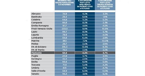 rovincia autonoma di Bolzano con 316,3 casi e il 13,6% di posti occupati in area medi se resistono le terapie intensive che sono al 6,3%. La