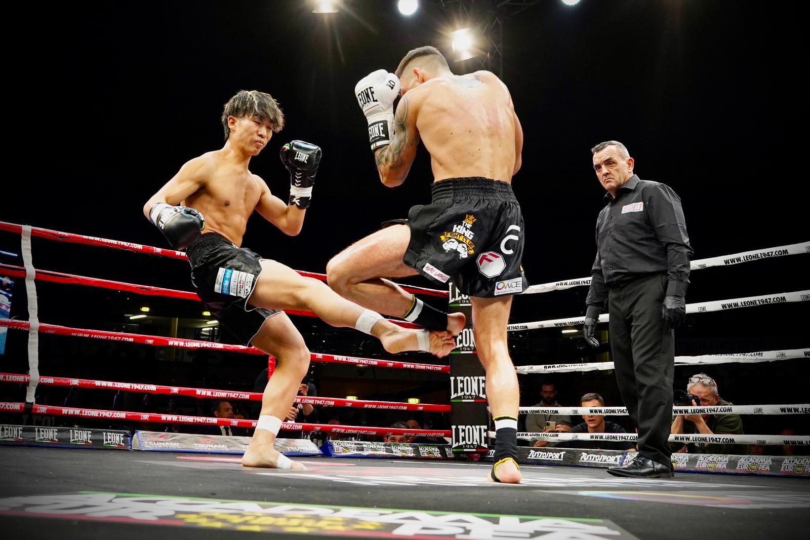 Il romano Mattia Faraoni ha mandato in visibilio il pubblico, rimanendo sul trono dei 95 kg di kickboxing. Ha battuto per abbandono all’inizio del secondo round, in seguito a un calcio girato, il romeno Bogdan Stoica. «È stata un’esperienza fantastica - commenta euforico il capitolino - ed è andato tutto alla perfezione. Mi ero preparato benissimo e ho fatto una grande impresa. Sapevo di avere di fronte una leggenda come Stoica, che un mese e mezzo fa era stato capace di battere Luis Tavarez a Glory ed era molto carico». Nella categoria 59 kg il favorito milanese Mirko Flumeri è stato sconfitto, per stop medico alla quarta ripresa, dal giapponese Takumi Terada, che lo aveva investito con delle sequenze di colpi alle gambe.