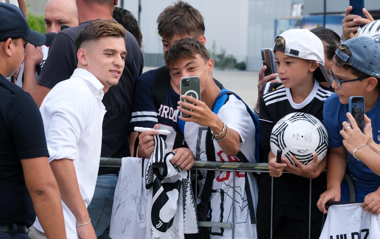 Francesco Conceicao accolto dai tifosi bianconeri davanti al J Medical