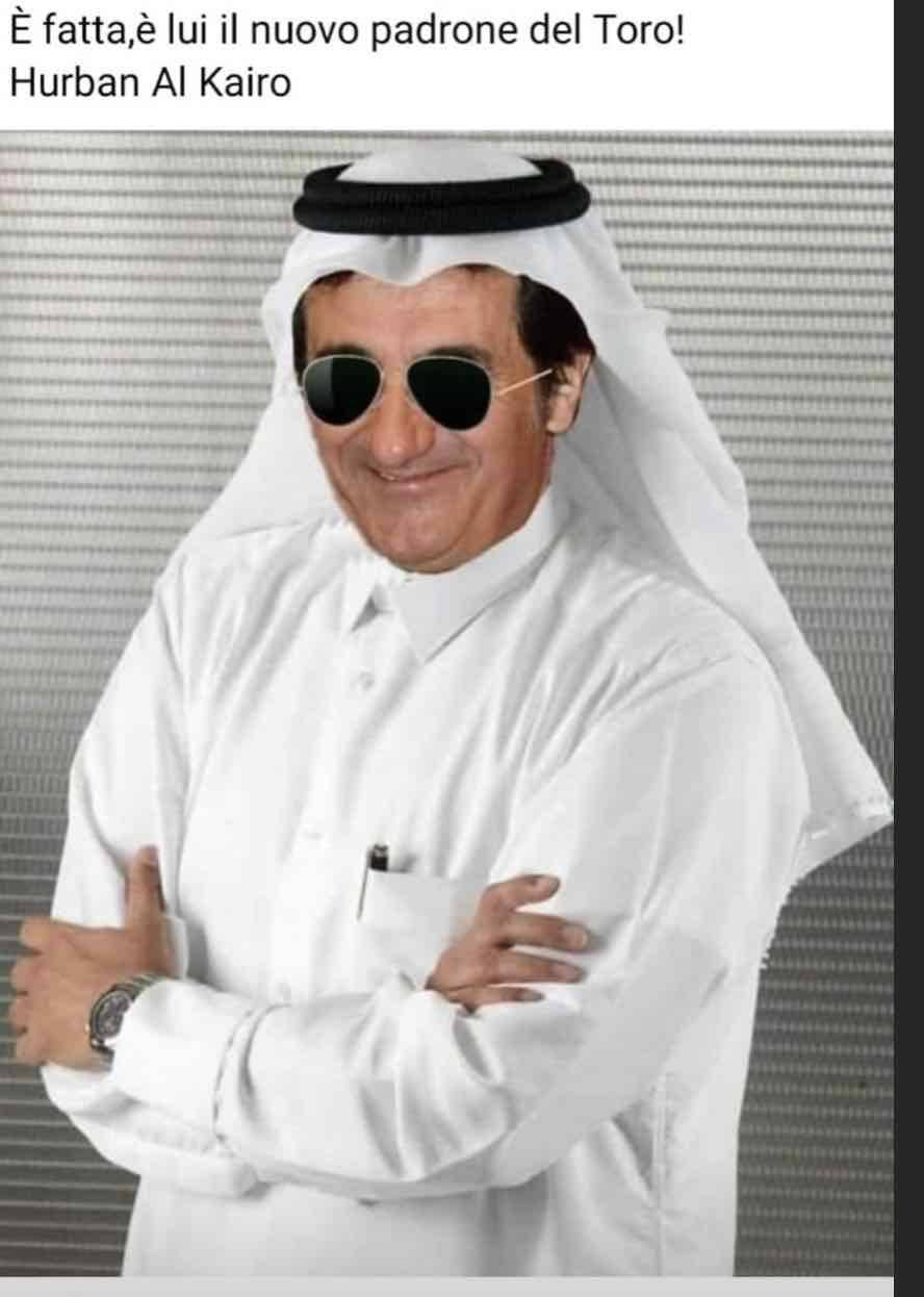 Un fotomontaggio pubblicato su Instagram qualche tempo fa da Urbano Cairo, trasformatosi nello sceicco Hurban Al Kairo