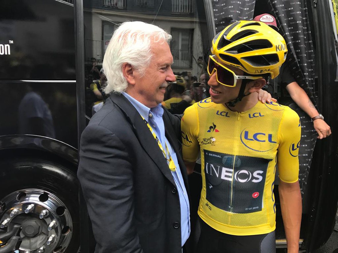 Qui sopra Gianni Savio con una delle sue scoperte, Egan Bernal
