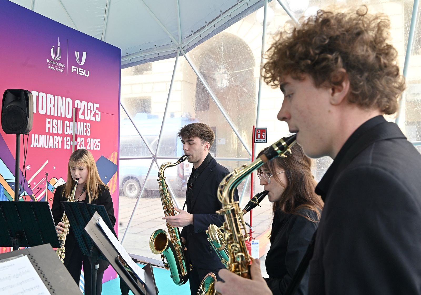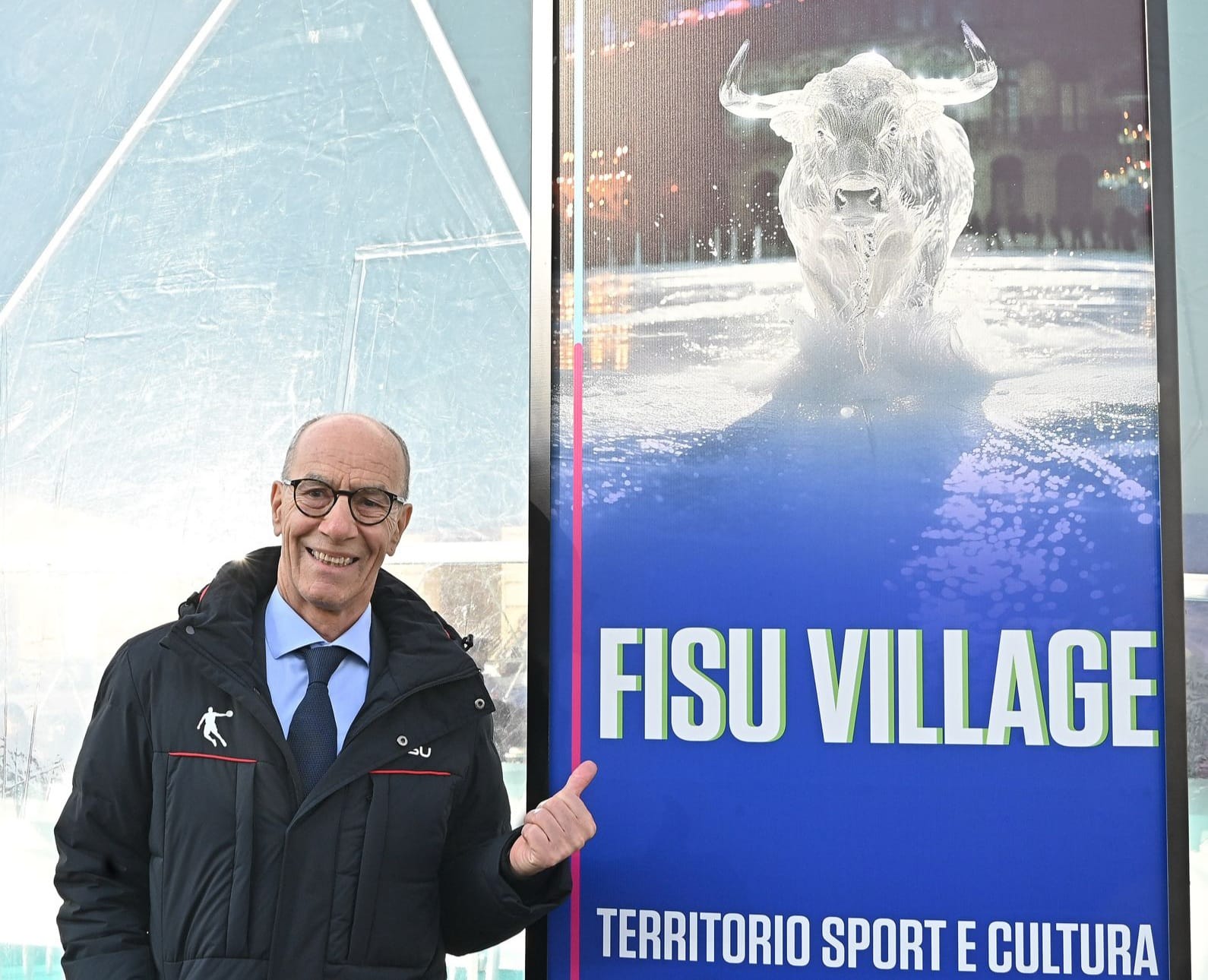 Successivamente in piazza Castello è avvenuto il taglio del nastro del FISU Village. Nell'area Igloo si svolgeranno le esibizioni musicali, a cura del Conservatorio di Musica di Torino, incontri sui temi dell’Agenda 2030 fra i quali benessere, energia e sostenibilità, sport e inclusione e mostre dedicate allo sport e al design, con particolare attenzione alle attività delle associazioni del territorio. Non mancherà una serata con i Maghi Torinesi. L’ingresso è libero con prenotazione obbligatoria. Nella zona Rettangolo ci saranno gli sponsor, con il simulatore di sci di Unicredit.