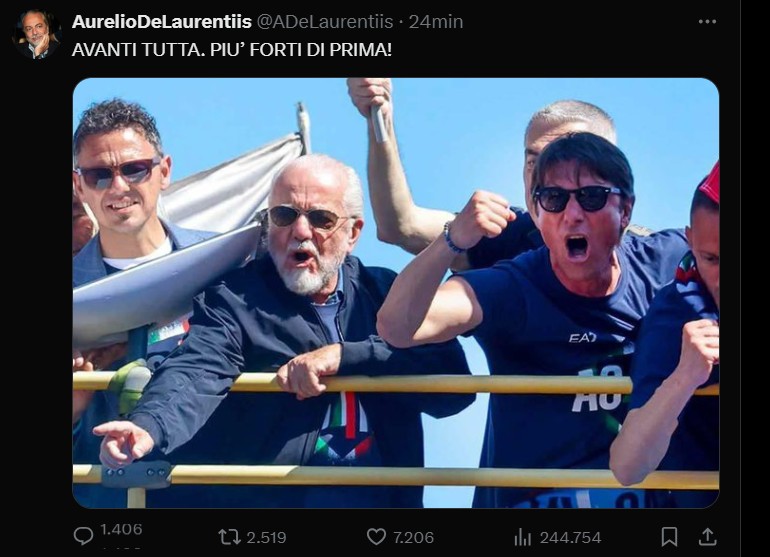 Qui sopra, l'annuncio del presidente De Laurentiis su "X"