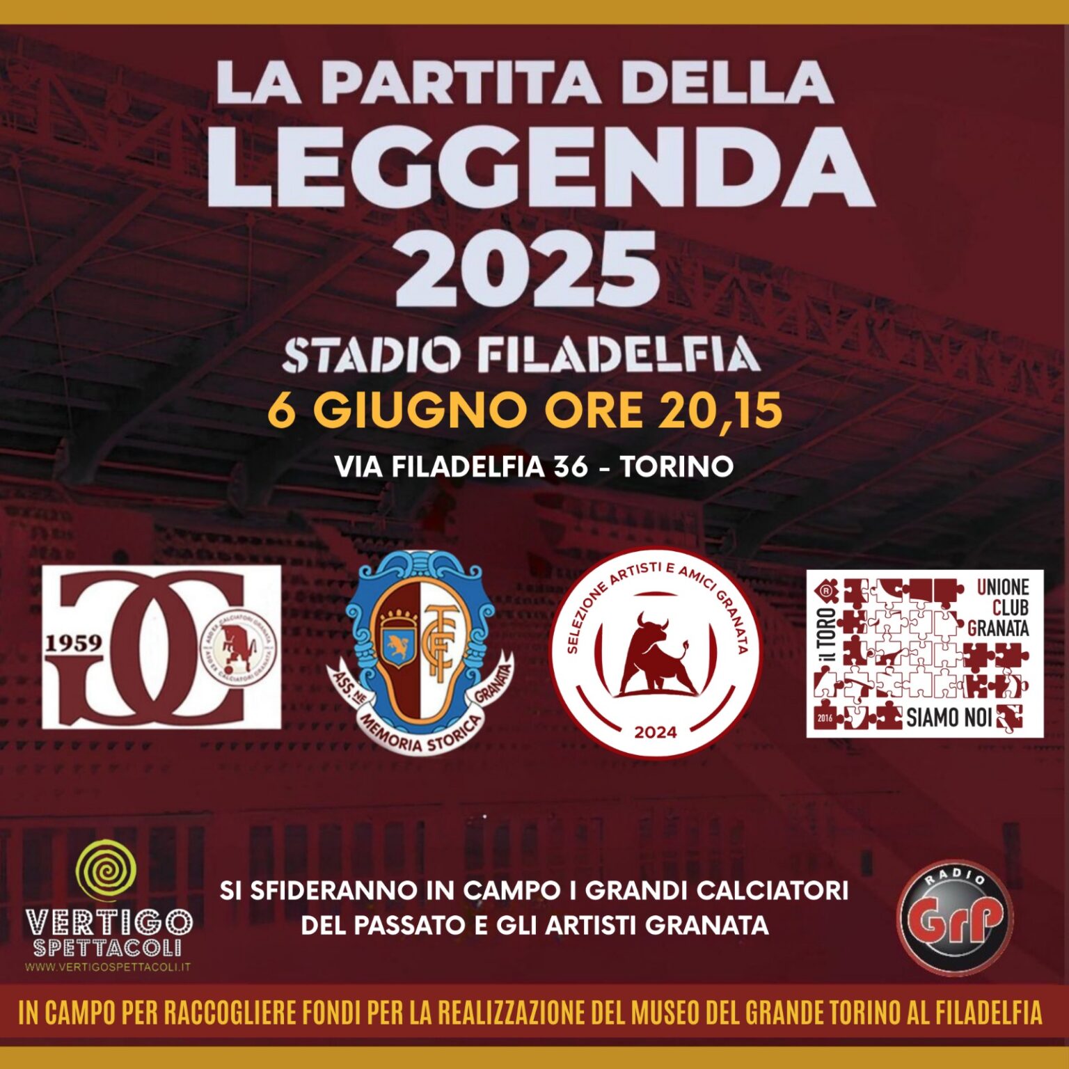 Oggi alle 20:15 lo Stadio Filadelfia ospita la seconda edizione de "La Partita della Leggenda", un evento che unisce il mondo del Torino FC e il suo folto pubblico di tifosi per un nobile scopo: raccogliere fondi per trasferire il Museo del Grande Torino e della Leggenda Granata nel cuore dello stadio Filadelfia. L’attuale sede del Museo, a Villa Claretta Assandri di Grugliasco, non è la sua collocazione naturale, che dovrebbe essere all’interno del Filadelfia, come previsto dai piani di ricostruzione dello stadio. Tuttavia, il progetto di realizzare la struttura per ospitare il Museo è stato fermo, a causa della mancanza di fondi.