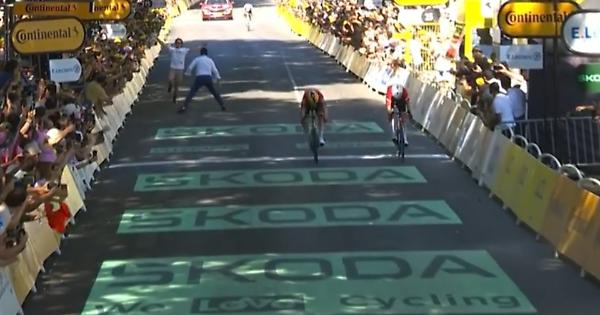 Giornate piatte al Tour de France? Non ce ne sono e lo ha dimostrato la ripreda della Grande Boucle a Tolosa. Una tappa da fuga e infatti così è stato, con lo sprint a due tra gli ultimi attaccanti vinto dal danese Jonas Abrahamsen (che 4 settimane fa si è fratturato una clavicola ma ha miracolosamente recuperato) e Mauro Schmid. La volata ha rischiato di essere rovinata da un manifestante, entrato sul rettilineo d'arrivo per protestare contro la squadra della Israel-Premier Tech, prontamente placcato da un membro della sicurezza.