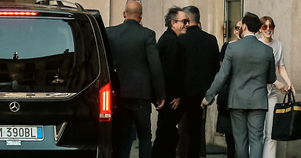 L'arrivo di Tim Burton al Museo del Cinema qualche minuto fa