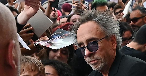 Tim Burton firma gli autografi ai fan davanti al Museo del Cinema