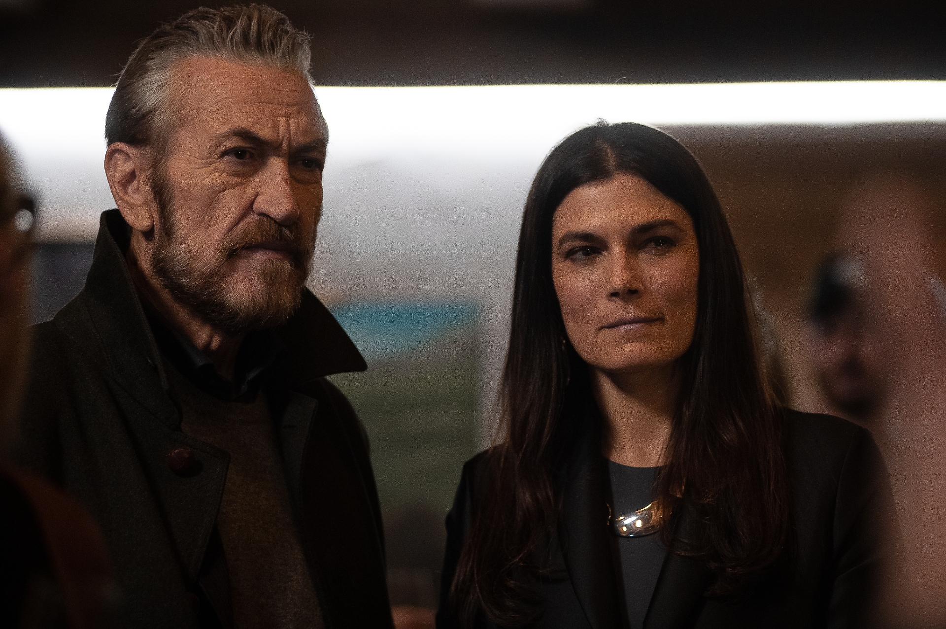 Qui sopra, Marco Giallini (Rocco Schiavone) insieme a Valeria Solarino (Sandra Buccellato)