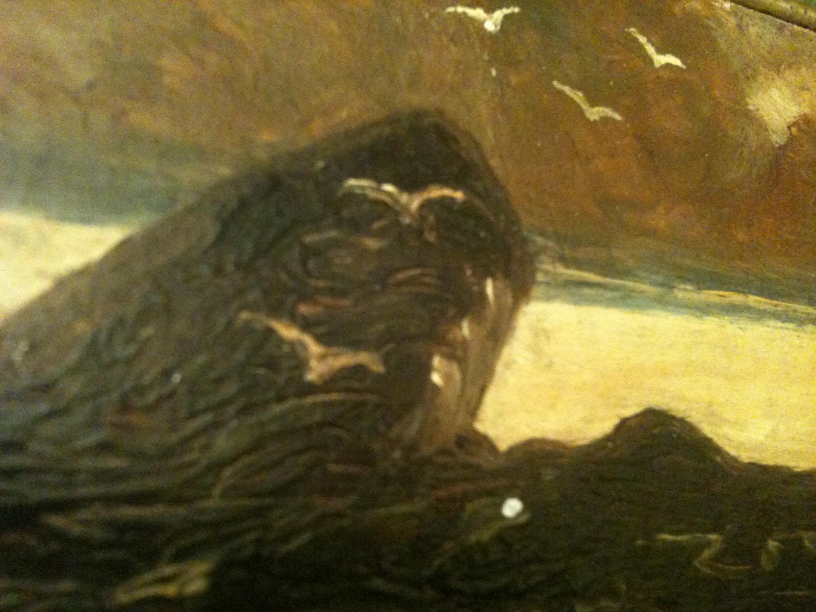 Perché è così scura? «Perché nel periodo del Brenthe (zona mineraria del nord Inghilterra, dove Vincent andava a predicare il Vangelo), anche la sabbia ha il colore del carbone. Le alghe portate dal mare, venivano rastrellate e raccolte in covoni. Anche in successive opere di Vincent quando si trasferì ad Arles (1888), egli si immaginò riposare sotto il sole d’agosto, nascosto sotto covoni di paglia che isolano sia dalla umidità che dal sole cocente». L’amico si risvegliò dall’assopimento digestivo e bofonchiò : «Vorrei vedere meglio il covone raccolto col rastrello. Ne hai per caso anche uno di Arle?».