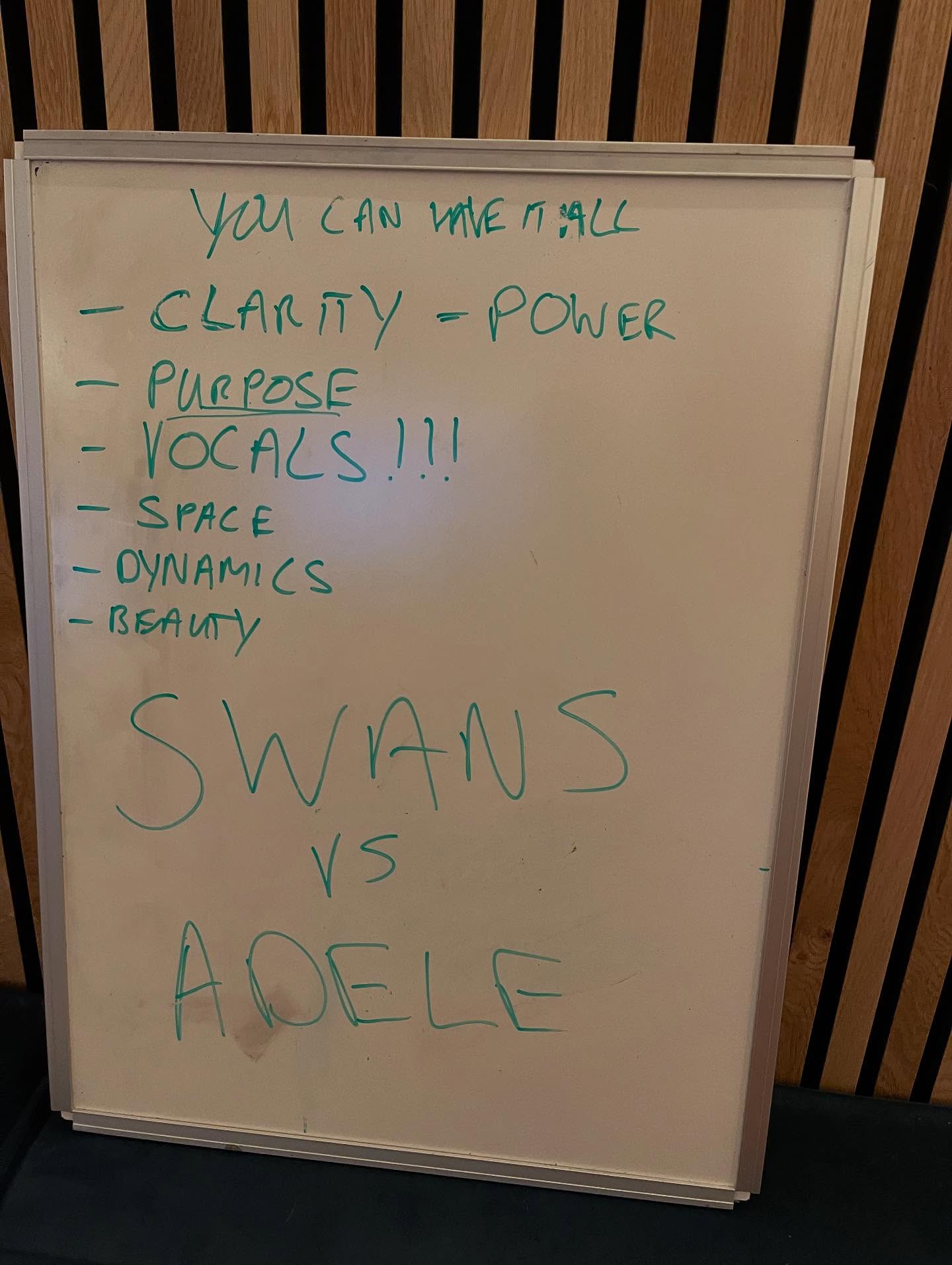 Sul sito ufficiale della band, intanto, è comparso un nuovo logo, immagini dal sapore countryside-horror e simboli criptici. Un puzzle che la community ha iniziato a decifrare, consapevole che Florence non lascia mai nulla al caso. Già a luglio aveva lasciato tracce: una lavagnetta con la frase “You can have it all”, parole come Clarity, Power, Purpose, e l’enigmatico “Swans vs Adele”. Poi scatti in studio con Mark Bowen degli IDLES, un “October” in gotico blu e la caption “Toil and Trouble”.
