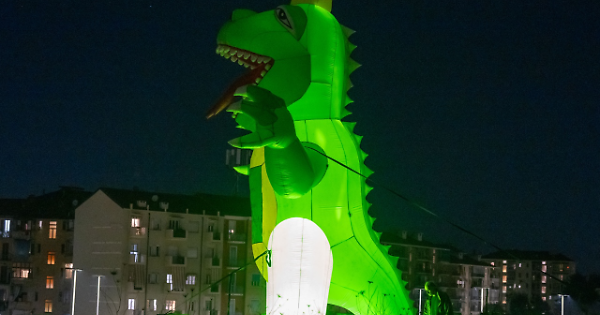 Svelato il mistero del drago di Barriera apparso lunedì notte all’improvviso sui tetti dei Docks Dora per poi sparire.