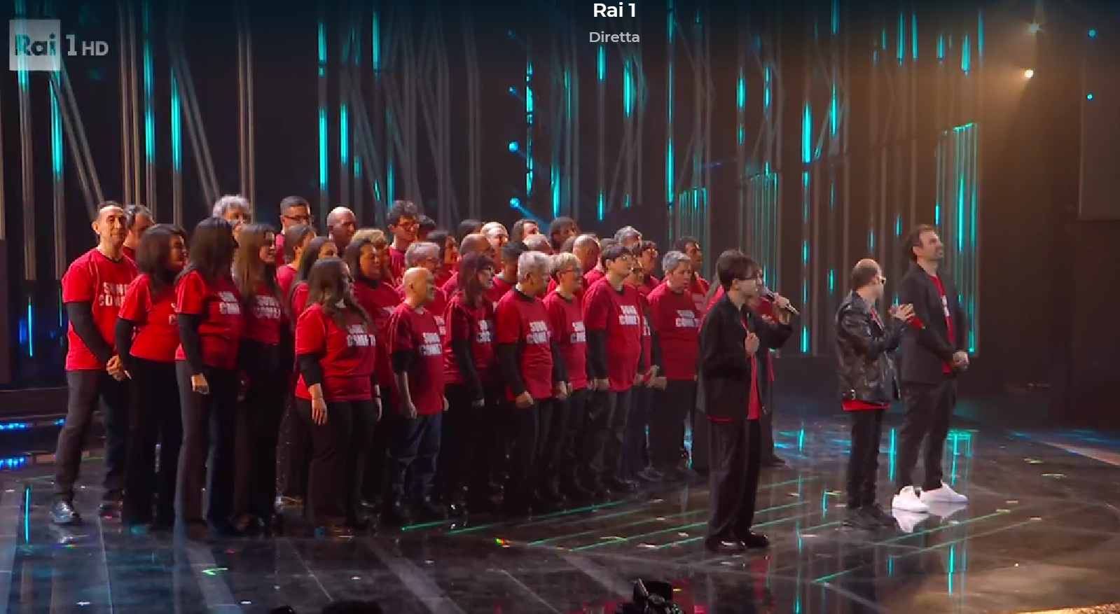 - ore 21.47: Sul palco il coro dell'Anffas sezione di La Spezia, si esibiscono sulle note di un grande classico: "Si può dare di più". Un coro speciale a cui si è unita Laura Pausini, abbracciandoli a fine esibizione. "Alla faccia dei leoni da tastiera". Un momento emozionante all'insegna dell'inclusione.