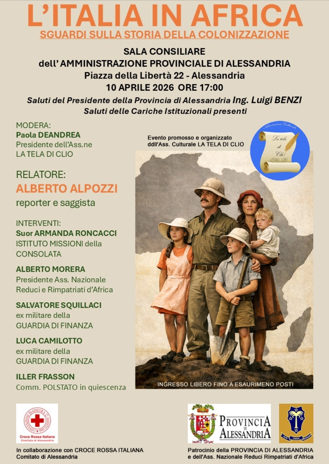 Venerdì 10 aprile alle ore 17.00, la Sala Consigliare della Provincia di Alessandria ospiterà la conferenza “L’Italia in Africa – Sguardi sulla storia della colonizzazione”, a cura di Alberto Alpozzi, autore della trilogia Bugie Coloniali.
