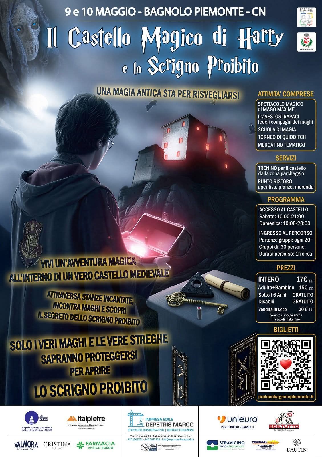 Il fascino del mondo magico sta per avvolgere la provincia di Cuneo. Il 9 e 10 maggio, la località di Bagnolo Piemonte ospiterà un evento imperdibile per tutti gli appassionati della saga che vede protagonista Harry Potter, il celebre mago: "Il Castello Magico di Harry e lo Scrigno Proibito". Un'occasione unica per vivere un'avventura immersiva all'interno di un vero castello medievale, tra incantesimi, creature fantastiche e misteri da svelare.