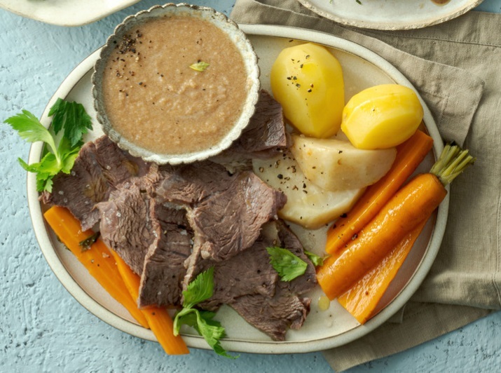 Il termine “lesso” fa riferimento al metodo di cottura utilizzato, in cui la carne viene bollita per ore in un brodo aromatico con cipolla, carote e sedano. La “pearà” è una salsa unica e caratteristica che accompagna il lesso e rappresenta il cuore del piatto. La parola “pearà” deriva dall’antico veronese “pepàre”, “pepe”, da uno degli ingredienti principali di questa saporita salsa. Tradizionalmente, la pearà si prepara utilizzando ingredienti come pane raffermo, brodo di carne, midollo osseo, pepe nero, formaggio grana grattugiato, burro e sale.
