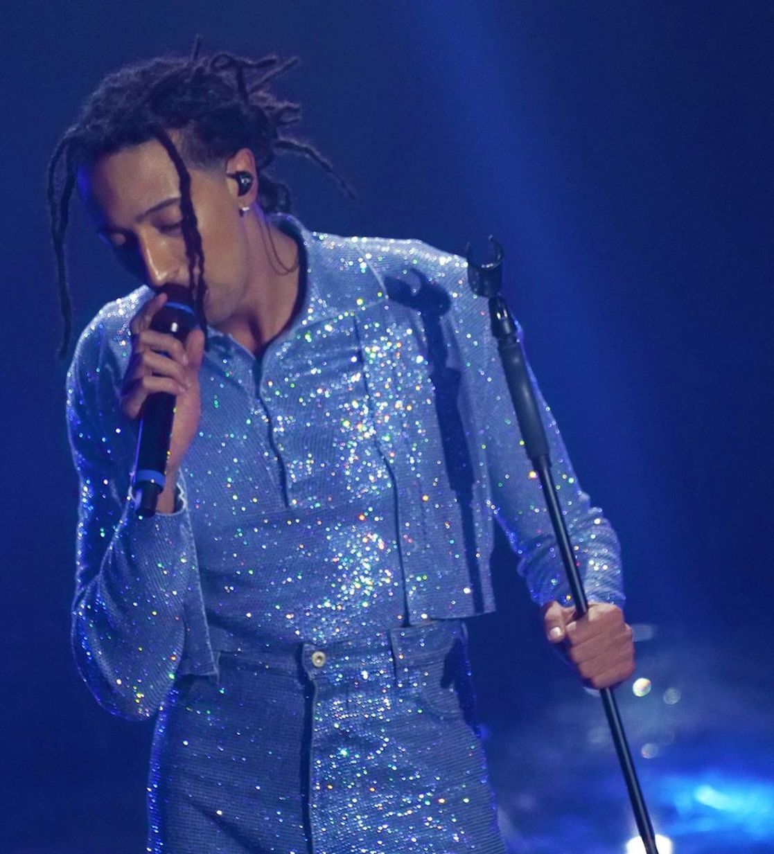 A seguire, ecco scendere Ghali. Che non è mai stato un esempio di sobrietà, ma per il suo primo Sanremo probabilmente voleva un abbigliamento a tema col suo brano: il titolo è "Casa mia" e con un completo crop-top, pantalone e golf, tutto color indaco e pieno di brillantini, viene da chiedersi se sia col pigiama dei giorni di festa. Ed è subito meme.
