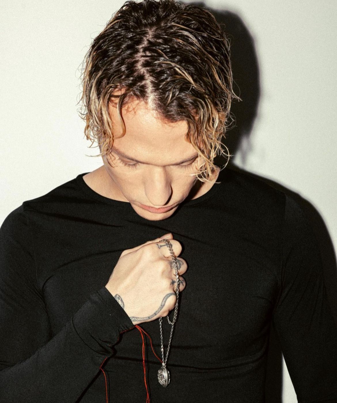 L'outfit di Mahmood per il green carpet è stato disegnato da John Galliano per Maison Margiela