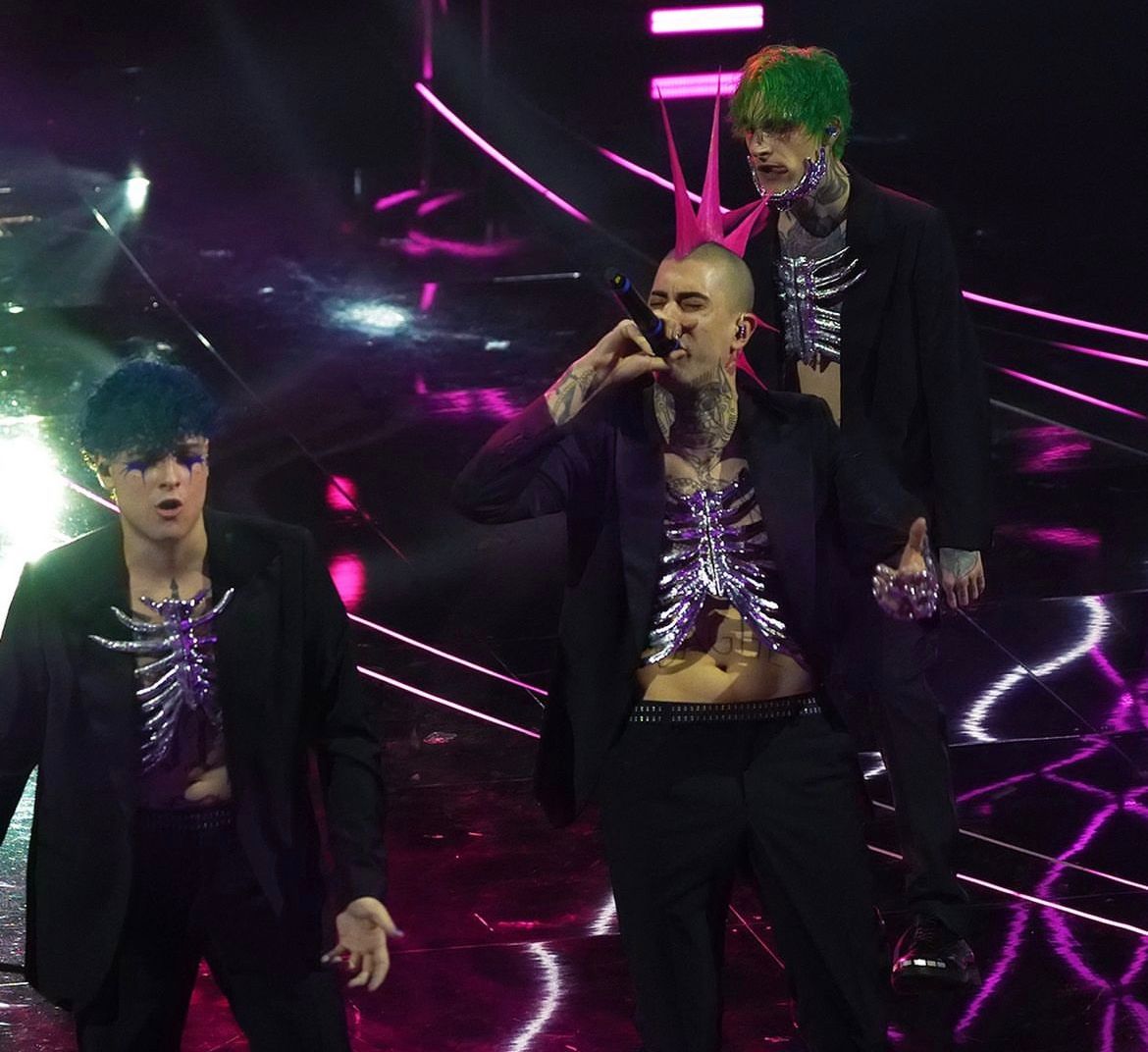 Marco Mengoni, oltre alla sua straordinaria voce, porta in scena un'eleganza senza tempo con abiti firmati Fendi e gioielli Tiffany&Co. Mahmood sorprende tutti con uno stile audace firmato Maison Margiela già dal green carpet: l'artista ha indossato un bustino rosso su un completo molto elegante, sdoganando un accessorio femminile su un completo classico ed elegantissimo. Il trio de Il Volo si rinnova con abiti Emporio Armani, mentre Angelina Mango opta per La Maison Etro. Sangiovanni, invece, si avventura in un territorio completamente nuovo con i capi di Giuliano Calza di GCDS.