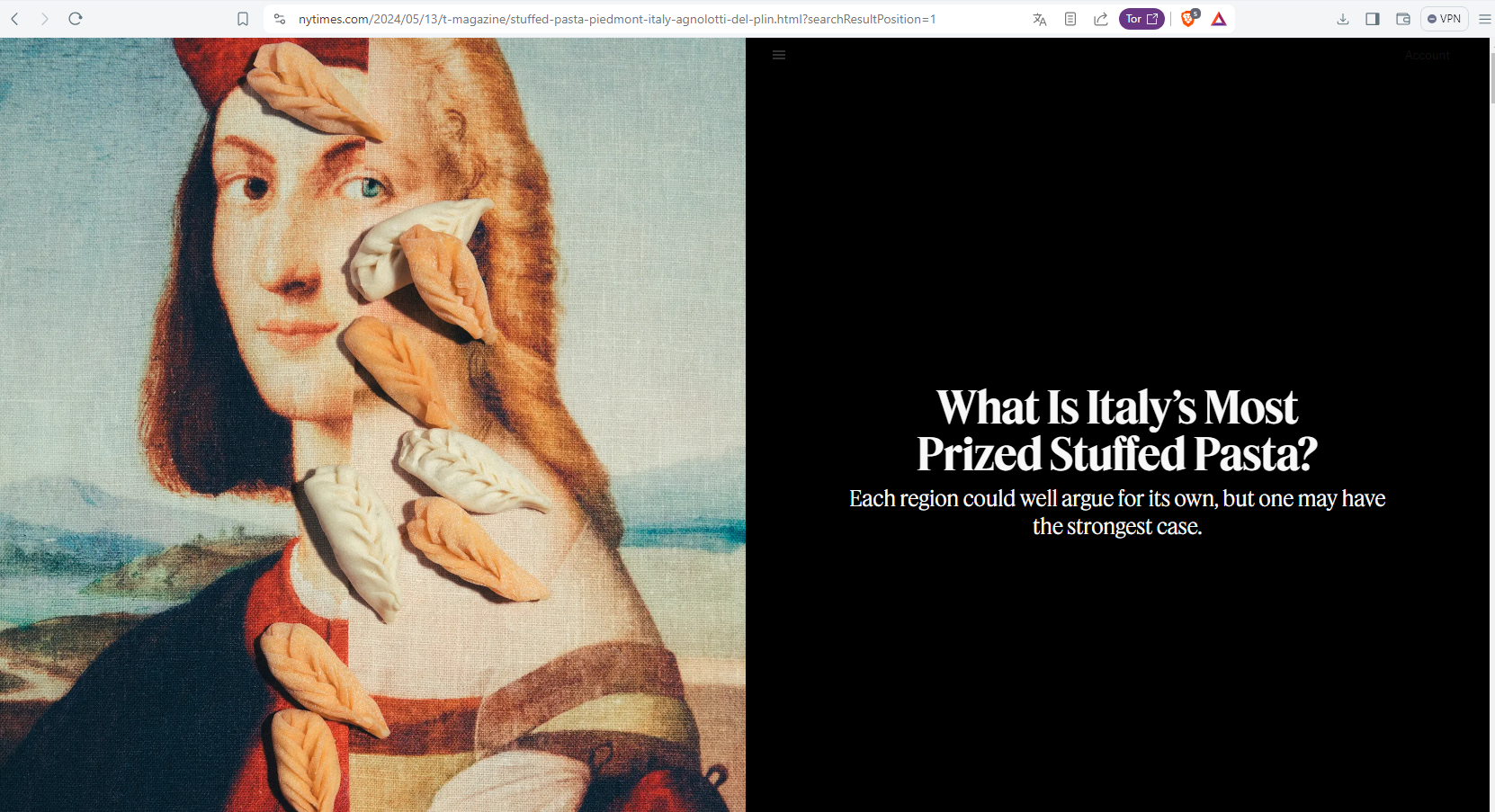 Dalle tavole piemontesi alla conquista del mondo (culinario). Gli agnolotti del Plin, la tradizionale pasta ripiena piemontese, hanno stregato l'inviata del New York Times Dawn Davis, "spedita" da uno dei più prestigiosi quotidiani del mondo sulle tracce della storia della pasta ripiena italiana (non solo quella piemontese), alla caccia di quella più pregiata per uno speciale del "T Style Magazine" che si può leggere sul sito del giornale americano (pubblicato a questo link). Non una giornalista qualunque: la Davis, 59 anni, è considerata una vera e propria "star" del giornalismo americano, una delle poche donne di colore ad aver raggiunto, nel corso della sua carriera, anche prestigiosi ruoli dirigenziali.