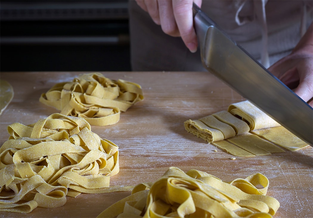 Il cinghiale è uno degli animali selvatici più diffusi in Italia, simbolo dei boschi e delle colline del nostro Paese. Presente soprattutto nelle regioni centrali come Toscana, Umbria e Lazio, ma anche in Piemonte, Liguria e Sardegna, il cinghiale si è adattato a diversi habitat grazie alla sua resistenza e alla capacità di nutrirsi di una vasta gamma di alimenti, dai frutti selvatici ai cereali coltivati. La caccia al cinghiale, praticata fin dall’antichità, ha radici profonde nelle tradizioni italiane, non solo come attività sportiva, ma anche e soprattutto come necessità per mantenere l’equilibrio ambientale, dato l’impatto che questa specie può avere sull’agricoltura. La carne di cinghiale è piuttosto magra ed è poco calorica, contiene una buona dose di ferro, utilissimo al nostro organismo, ed in cucina è molto apprezzata per il suo sapore intenso e selvatico, ideale per piatti ricchi e aromatici come lo spezzatino con la polenta, ma è anche un’ottima base per salumi come salsicce e prosciutti. Uno dei piatti più rinomati a base di cinghiale sono le pappardelle al ragù. Ci spostiamo quindi in centro Italia e scopriamo questo piatto della tradizione.