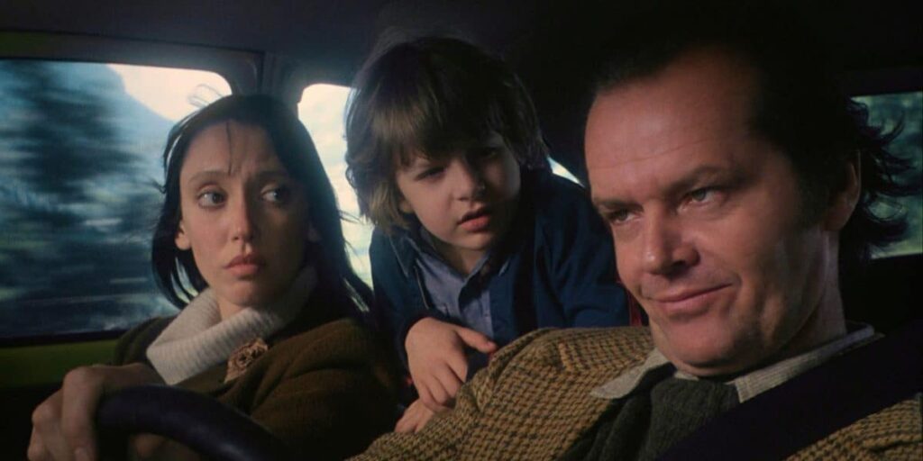 Partendo da sinistra: Shelley Duvall, Danny Lloyd e Jack Nicholson in "The Shining" di Stanley Kubrick