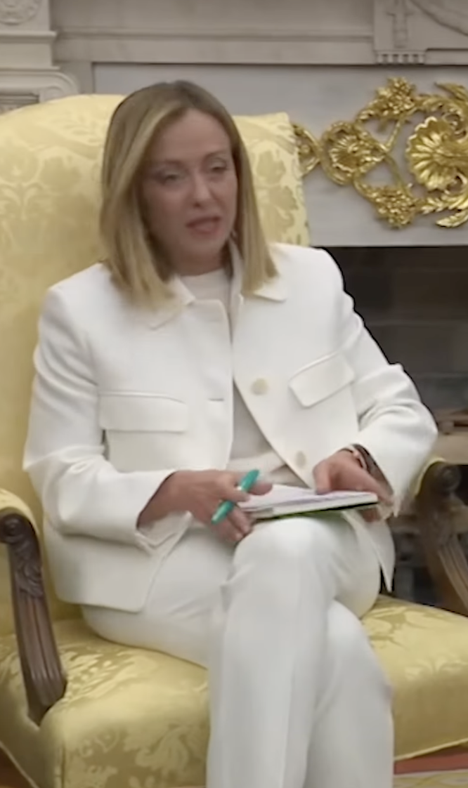 In quella scena, niente è lasciato al caso, nemmeno l'outfit della presidente del Consiglio italiano. Trump, noto per il suo approccio diretto e senza fronzoli, ha accolto la leader italiana con un “great person”, esprimendo l'ammirazione che, senza dubbio, era pronta a tradursi in uno degli scambi più significativi della politica internazionale recente.